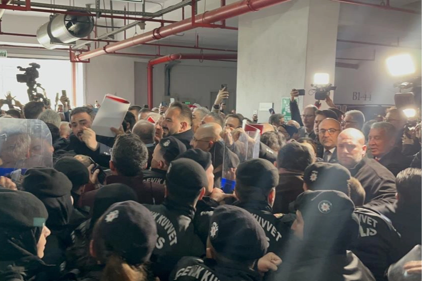 Polis yoğun güvenlik tedbiri alırken, meclis üyeleri haricinde kimsenin içeriye girmesine izin verilmedi. Meclis toplantısını takip etmek isteyen 200 kişilik CHP'li grup bariyerleri aşıp camları kırarak belediye binasına girdi. Arbede yaşandı. Polis içeri girenlere müdahale etti.