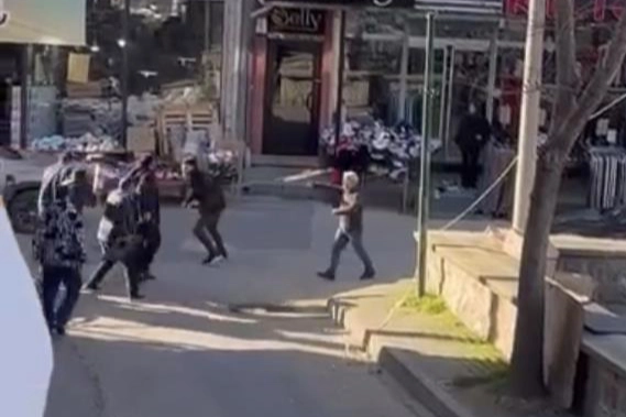Bursa'nın Osmangazi ilçesinde iki esnaf arasında çıkan kavga sokak ortasında boks ringini aratmadı. O anlar çevredeki vatandaşların cep telefonu kamerasına yansıdı.