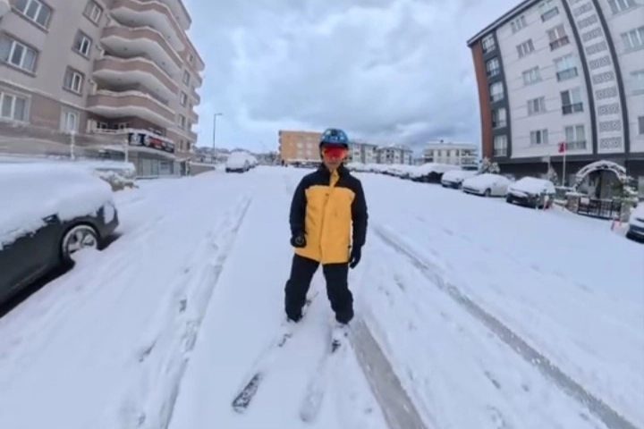 Kayak yaparken kendini kayda da alan vatandaş, karla kaplanan yollarda rahatlıkla ilerlediği anları sosyal medyada paylaştı. Görüntüler kısa sürede ilgi gördü. Yoğun kar yağışı sonrası belediye ekiplerinin yol açma ve tuzlama çalışmalarını sürdürdüğü öğrenilirken, yetkililer sürücü ve yayaları dikkatli olmaları konusunda uyardı.