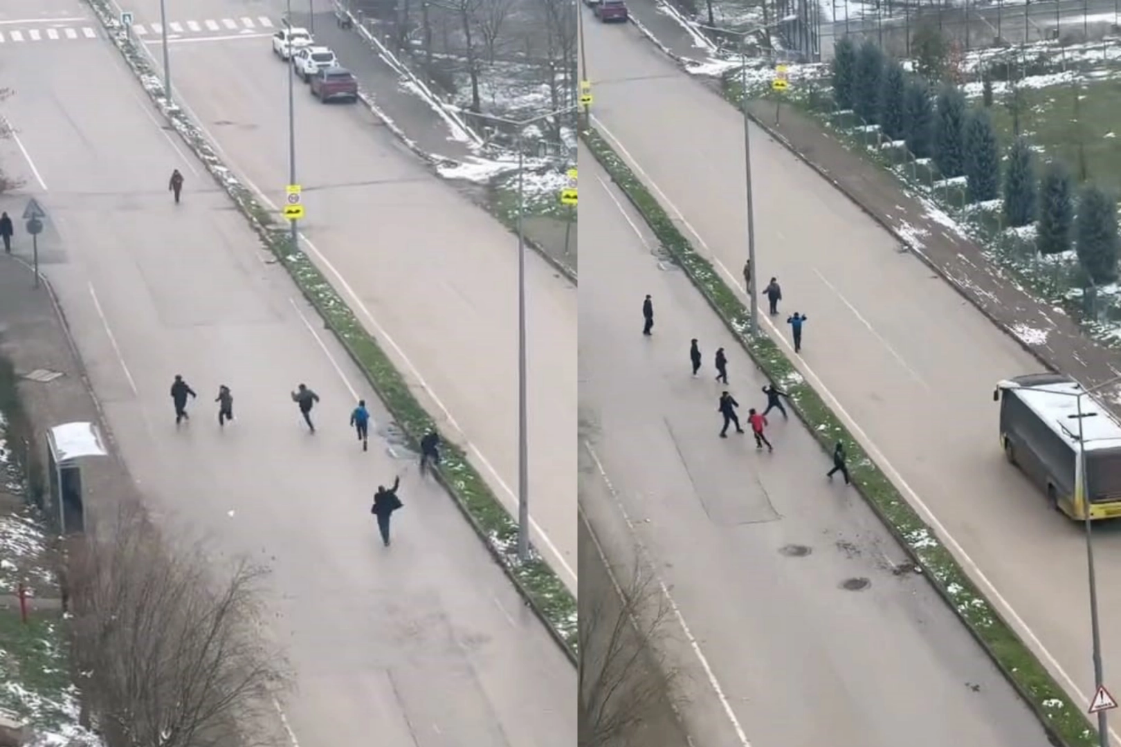 Şoförlerden biri aracını yol kenarına park ederek eline sopa aldı ve çocukların peşinden koştu. Yaşanan kovalamaca çevredeki vatandaşlar tarafından cep telefonu kamerasıyla görüntülendi. Görüntülerde çocukların kaçtığı, şoförün ise bir süre kovaladıktan sonra geri döndüğü görülüyor.