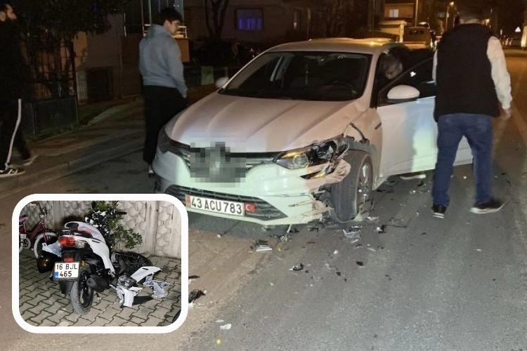 Kaza, saat 22.20 sıralarında Süleymaniye Mahallesi Akgül Sokak'ta meydana geldi. Yusuf I. (16) yönetimindeki 16 BJL 465 plakalı motosiklet karşı yönden gelen Sürücü Mustafa K. (23) yönetimindeki 43 ACU 783 plakalı otomobil ile kafa kafaya çarpıştı. Çarpışmanın etkisiyle devrilen motosikletten düşen sürücü ile arkasındaki yolcu Ege A.(15) yaralandı. Yaralılar kaza yerine sevk edilen ambulanslarla İnegöl Devlet Hastanesi'ne kaldırıldı. Kaza anı bir işyerinin güvenlik kamerasında saniye saniye görüntülendi. Polis kazayla ilgili soruşturma başlattı.