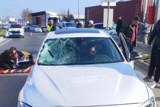 Bursa'da korkutan kaza! Araç camına çarpan genç yola savruldu