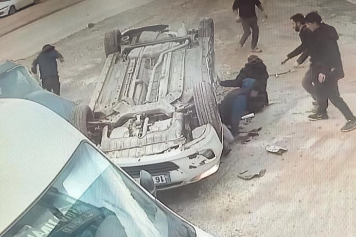 Çarpmanın etkisiyle ters dönen otomobilde sürücü A.B. ile yolcu konumunda bulunan öğrenciler S.B. (14), İ.Ş. (16), E.D. (15), B.A. (15), E.T. (16) ve M.D. (16) araçta sıkıştı.