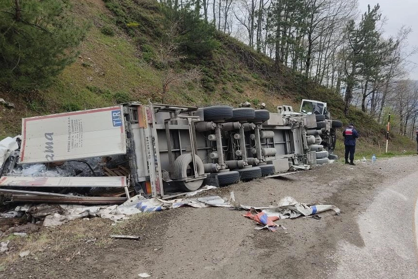 Kaza, saat 16.00 sıralarında İnegöl-Domaniç kara yolu İnegöl'ün Tahtaköprü Mahallesi mevkiinde meydana geldi. Domaniç istikametinden İnegöl'e seyir halinde olan Murat B.(39) yönetimindeki 16 BUT 870 plakalı su yüklü tır, yokuş aşağı inerken frenlerinin patlaması sonucu sürücüsünün kontrolünden çıktı. Yoldan çıkan tır yamaca devrildi. Kaza yerine 112, jandarma ve itfaiye arama kurtarma ekipleri sevk edildi. Kaza sonucu yaralanan sürücü, tırın camı kırılarak ekiplerce kurtarıldı. Yaralı olay yerine sevk edilen ambulansla İnegöl Devlet Hastanesine kaldırıldı. Jandarma komutanlığı ekipleri kazayla ilgili soruşturma başlattı.