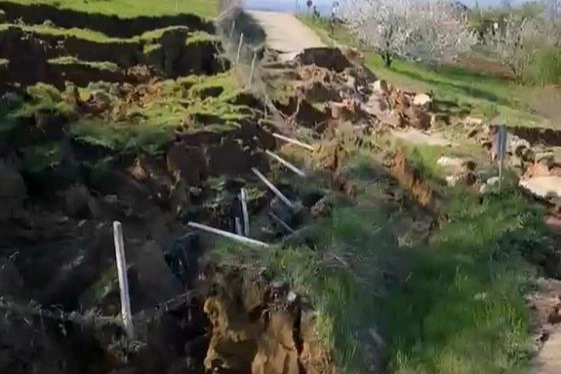 Bursa'nın İnegöl ilçesinde iki kırsal mahalleyi birbirine bağlayan yol, meydana gelen heyelan nedeniyle ulaşıma kapandı.