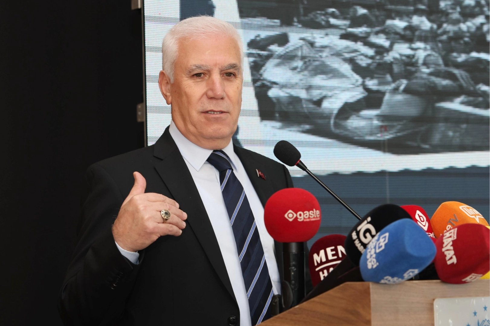 "Bursa kirlene kirlene bugünlere geldi. Şimdi biz 2050 vizyonunu, bir 'Kent Anayasası' adını verdiğimiz bir plan yapıyoruz. 1/100.000 ölçekli planda hem kentsel dönüşümle ilgili alanları ve Bursa'nın geleceğiyle ilgili alanları belirlemeye çalışıyoruz. Bunlar yoğun bir çalışma sonucunda arkadaşlarımız toplumun her kesimiyle, yani işçisinden öğrencisine, kadınından erkeğine, emeklisinden iş adamına kadar, belediye başkanlarına kadar tüm toplumun kesimleriyle bir araya gelip, bir plan oluşturma aşamasının son noktasına eriştiler. Tabii ki 40 civarında danışman hocamız var. Aynı zamanda akademik kurulumuz var. Bu akademik kurulda tüm akademik odalar zaten orada temsil ediliyor. Böyle bir akademik kurulun da yönlendirmesiyle birlikte artık fiili olarak şu anda 1/100.000 çalışmasının son aşamasına, geliyoruz. Tabi bu aşamaya geliş çok kolay olmadı. Bir taraftan kentsel dönüşümü, bir taraftan kaçak yapıların iyileştirilmesi ya da o bölgelerin nasıl yaşanabilir kent haline gelmesi, diğer taraftan yeniden yeşil Bursa hedefimiz var. Bunu nasıl ortaya koyabiliriz düşüncesinin yansıması. Diğer taraftan iklim krizi yaşıyoruz. İklim kriziyle beraber bunları da içine alan, hem yapılacak olan bu dönüşümde, kentsel dönüşümde olsun, diğer planlama çalışmalarında olsun, yeşil dokunun öne çıkarılmasıyla birlikte aynı zamanda, burada işte gri su uygulamasıdır vesaire, bunların da tartışıldığı bir süreci yaşamış olduk. Sürecin sonuna gelmiş olduk. Şimdi Bursa'da elbette ki bu kentin nüfusunun 2050'de yaklaşık 4 milyon civarında olması bekleniyor. Yani herhangi bir göç dalgasıyla yine karşılaşmazsak. Bunu da içine alan, konutların da iyileşmesini, bunların da tekrar yaşanabilir alanlara dönüşmesini, bu alanların, kaçak yapılaşma alanlarının, kentsel ihtiyaçların da oralarda var olmasını sağlayacak düzenlemelerle birlikte Bursa hakikaten Türkiye'ye örnek bir kent anayasasını, 1/100.000'lik kent anayasasını yaşama geçirecek. Ben, inanıyorum hem meclislerimize hem de siyasilere, ki siyasiler de bu işin içinde. Herkese yürekten teşekkür ederim. Katkı koyan, katkı sunan herkese teşekkür ediyorum."
