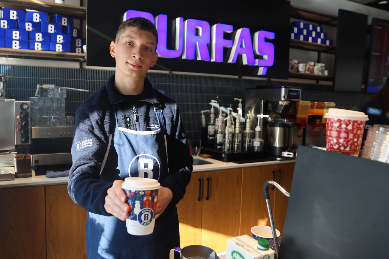 Engelli İstihdam Projesi Engelli İş Koçu Sinem Küçüksarı, proje kapsamında ilk kurumsal desteğin BURFAŞ tarafından sağlandığını, bu sayede 8 özel gereksinimli stajyerin istihdam sürecine dahil edildiğini ifade etti. Engelli İstihdam Projesi Engelli İş Koçu Ersel Topçu, istihdam süreci hakkında bilgi almak ve istihdam başvurularını oluşturmak isteyenlerin Atatürk Kültür Merkezi Merinos Yerleşkesi’ndeki Bursa İş Ofisi'ni ziyaret edebileceğini belirtti. ENGELLER SEVGİYLE AŞILIYOR Merinos Parkı’ndaki BURFAŞ B Kafe’de stajyer barista olarak görev yapan 16 yaşındaki Ümit Hazar, barista önlüğünü giyerek personelle birlikte siparişleri titizlikle hazırlıyor. B Kafe’de staj yapmaktan mutluluk duyduğunu söyleyen Hazar, kafeye gelen vatandaşlardan da büyük takdir topluyor.