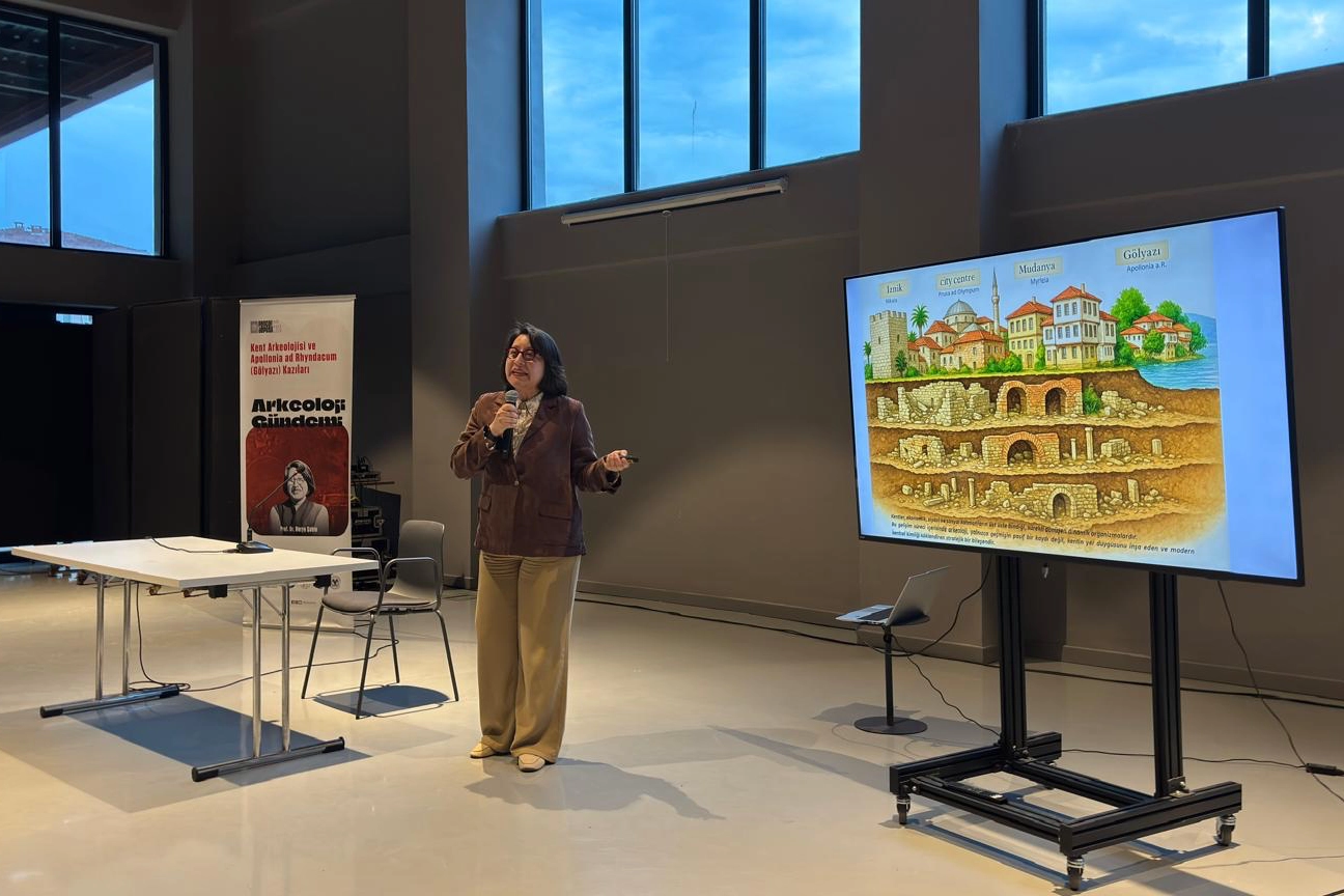 Nilüfer Belediyesi tarafından Pancar Deposu’nda düzenlenen Arkeoloji Gündemi söyleşisinin son konuğu Bursa Uludağ Üniversitesi (BUÜ) Arkeoloji Bölümü Ortaçağ Arkeolojisi Anabilim Dalı Başkanı Prof. Dr. Derya Şahin oldu. “Kent Arkeolojisi ve Apollonia ad Rhyndacum (Gölyazı) Kazıları” başlıklı söyleşide arkeolojinin, kenti anlamlandıran ve köklendiren bir araç olduğu konuşuldu.