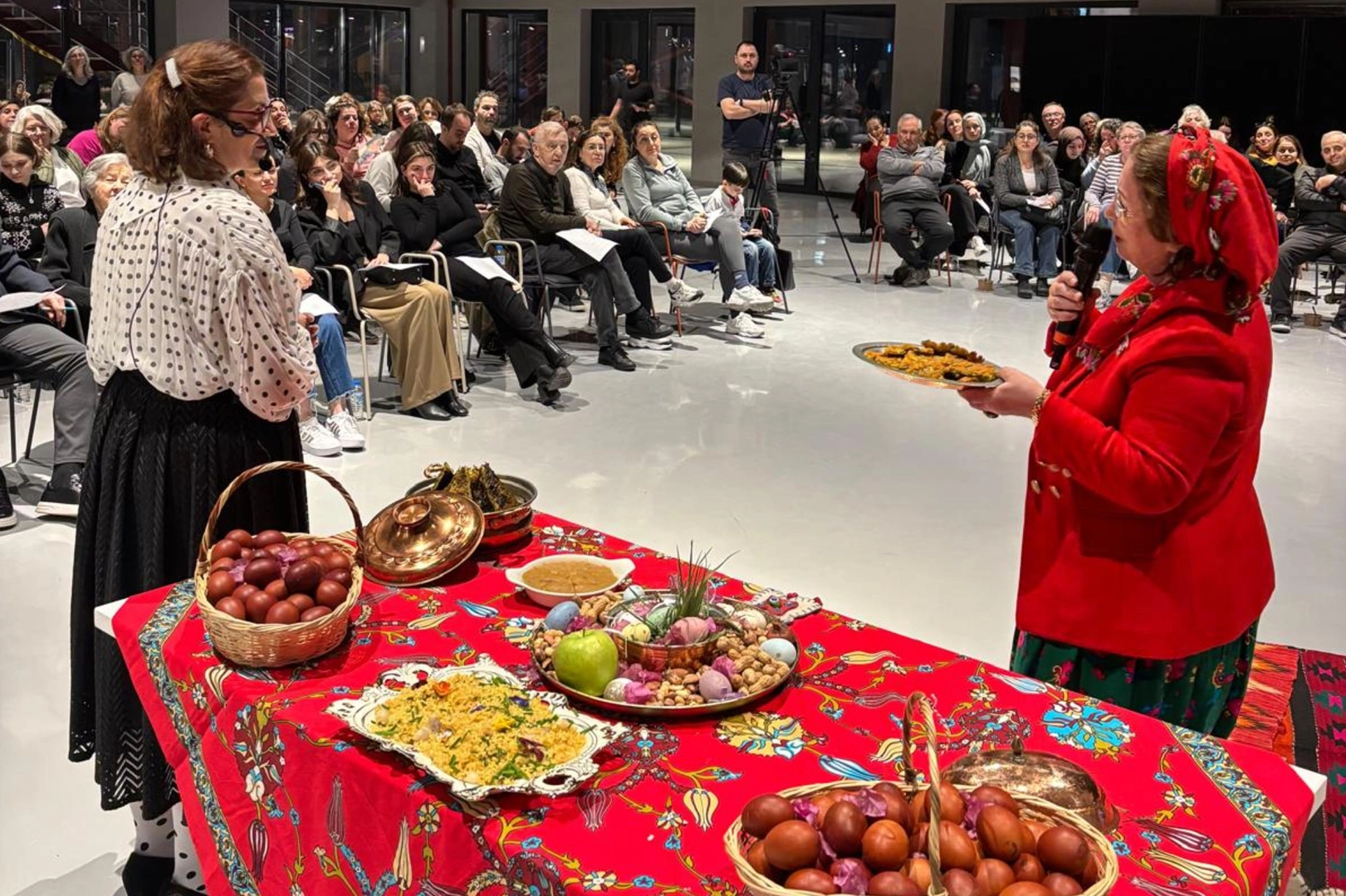 Söyleşiye konuşmacı olarak Doç. Dr. Zeliha Nilüfer Nahya ve Fatma Güler katıldı. Etkinlikte, Anadolu’nun köklü geleneklerinden Çiğdem Pilavı ve Nevruz kutlamalarından, saya gezmelerine ve marteniçka takma ritüellerine kadar baharı karşılayan pek çok adet, müzik ve yemek kültürü eşliğinde incelendi. Bu geleneklerin toplumsal cinsiyet rolleriyle olan bağlantısı ve kadınların bu somut olmayan mirası günümüze nasıl taşıdığı detaylı bir şekilde ele laındı.