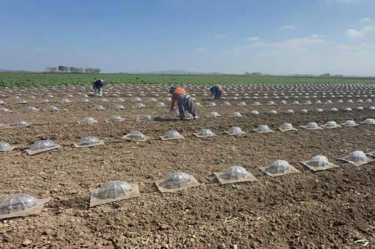 Bursa'nın sebze üretimiyle önde gelen ve verimli topraklarıyla bilinen Karacabey Ovası'nda turfanda karpuz ekimleri başladı.