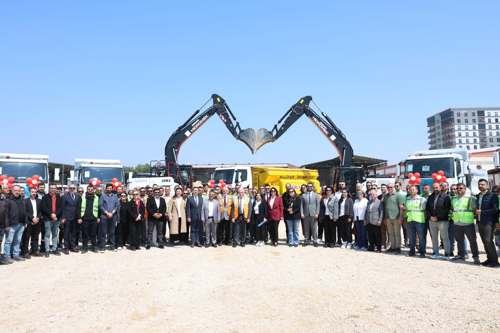 Nilüfer Belediyesi, altyapı ve ulaşım hizmetlerini daha etkin, hızlı ve kesintisiz sürdürmek için bir yatırımı daha hayata geçirdi. Araç filosuna yeni katılan 4 iş makinesi ve 6 kamyonun hizmete giriş töreni Nilüfer Belediye Başkanı Şadi Özdemir, başkan yardımcıları ve personelin katılımıyla gerçekleştirildi. Alaaddinbey Ek Hizmet Binasının bahçesinde düzenlenen törende konuşan Başkan Şadi Özdemir, her geçen gün büyüyen Nilüfer’de kentin her sokağına eşit ve kaliteli hizmet götürmek için aralıksız çalıştıklarını söyledi. Nilüfer için her zaman daha iyisinin mümkün olduğunu vurgulayan Başkan Şadi Özdemir, “Hizmet kalitemizi artırmanın yolu, sahadaki gücümüzü büyütmekten geçiyor. Sahadaki elimiz, kolumuz olan mevcut araç filomuza bugün yerli üretim olan 4 iş makinesi ve 6 kamyon daha ekliyoruz. Bu alımla iş makinesi sayımız yüzde 20, kamyon sayımız yüzde 46 artıyor” dedi.