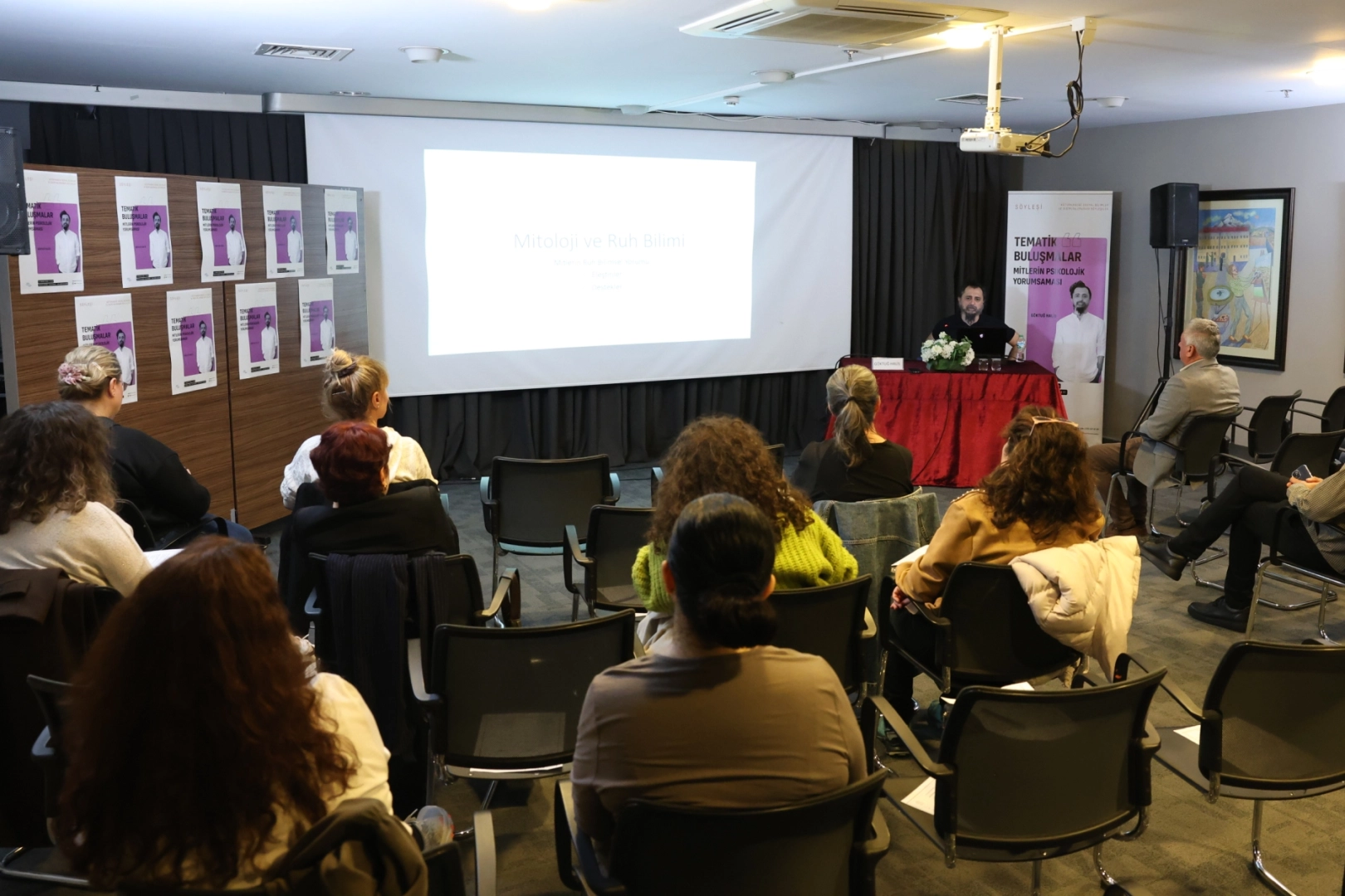 Söyleşide, 19. yüzyılın sonundan itibaren psikolojinin mitoloji sahasına girişini ele alan Halis, Sigmund Freud ve Joseph Campbell gibi isimlerin teorilerini yorumladı. Halis, “Mitlerin büyük bir çoğunluğu sanılanın aksine sadece ruh bilimiyle değil, toplumsal sorunları çözme ve kültürel hafızayı koruma işleviyle var olmuştur” dedi.