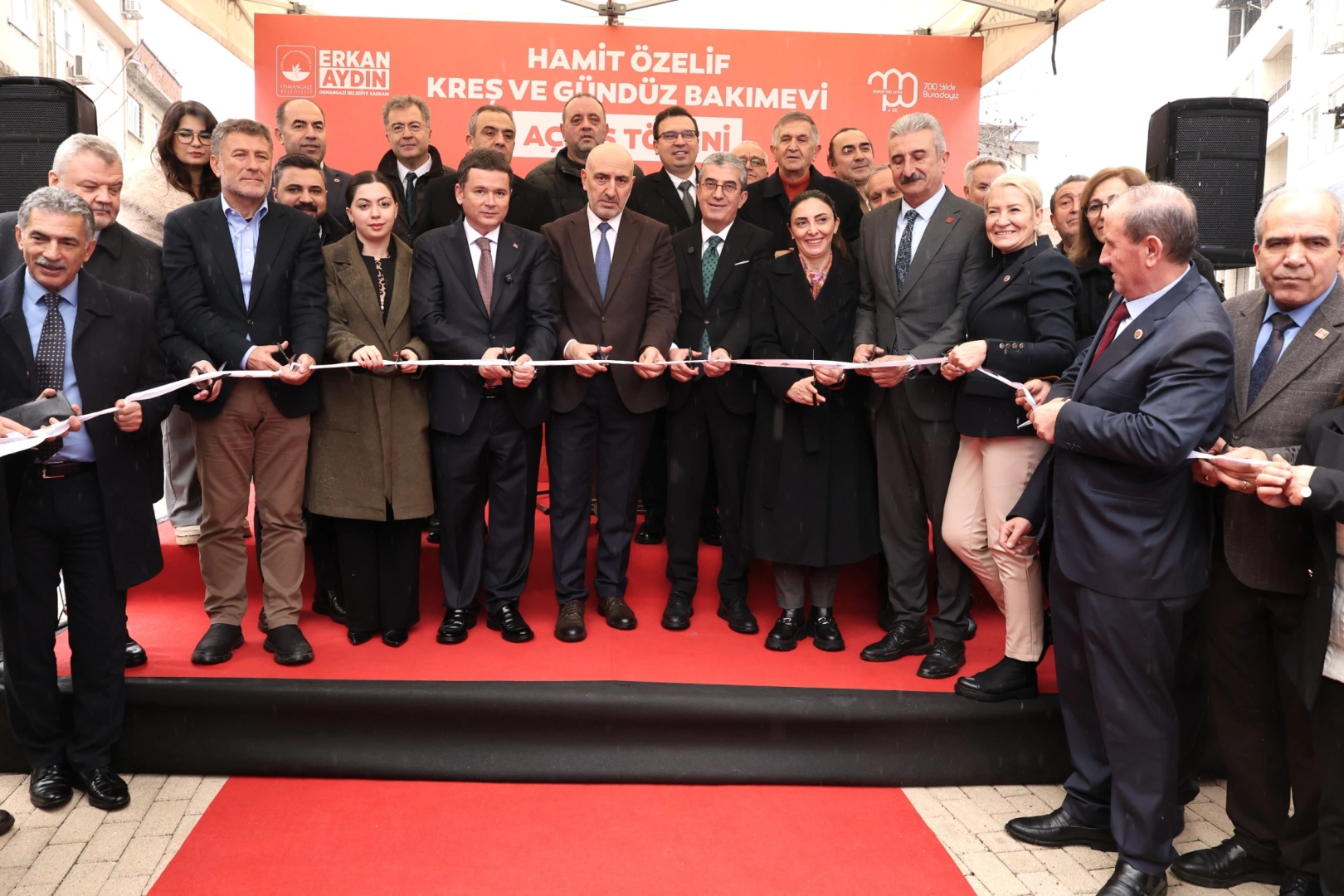 Açılış konuşmalarının ardından Osmangazi Belediye Başkanı Erkan Aydın, TBMM CHP Grup Başkanvekili Gökhan Günaydın ve protokol üyeleri açılış kurdelesini keserek kreşi gezdi.