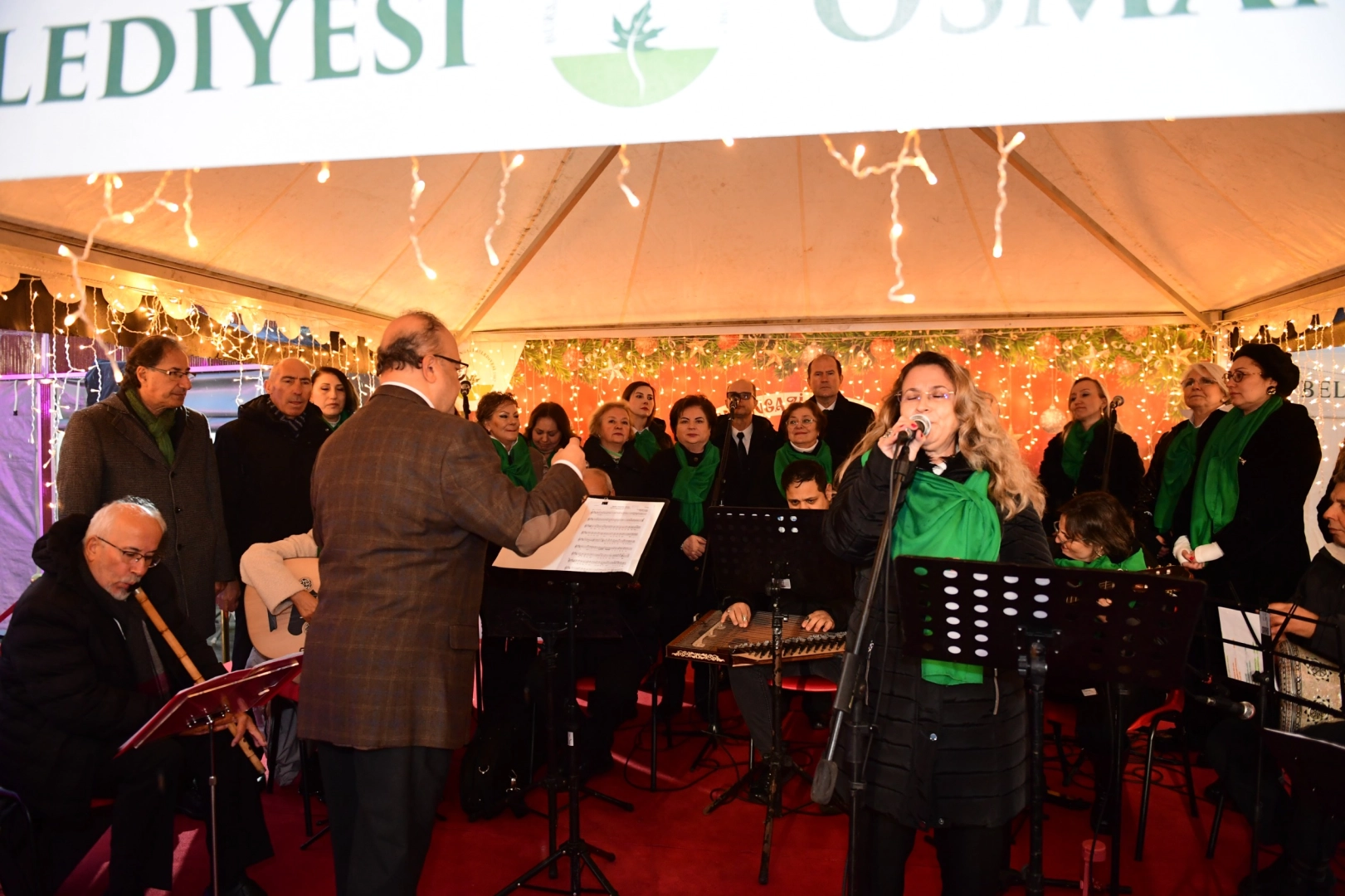 Osmangazi Belediyesi’nin ev sahipliğinde Osmangazi Meydanı’nda Bursalıları ağırlayan Yeni Yıl Festivali, 2026’ya sayılı günler kala vatandaşların ilgi odağı olmaya devam ediyor. Festivalin üçüncü haftası geride kalırken, etkinlikler kapsamında Uludağ Sanat Derneği Müzeyyen Senar Türk Sanat Müziği Korosu sahne aldı. Repertuvarında Türk sanat müziğinin dillere pelesenk olan seçkin eserlerine yer veren Hilmi Bozdemir şefliğindeki koro, soğuk havaya rağmen kendilerine yoğun ilgi gösteren dinleyicilerinin yüreklerini ısıttı. Performanslarıyla beğeni toplayan koro üyeleri, Bursalıları festivalde geçmişe doğru bir yolculuğa çıkardı.