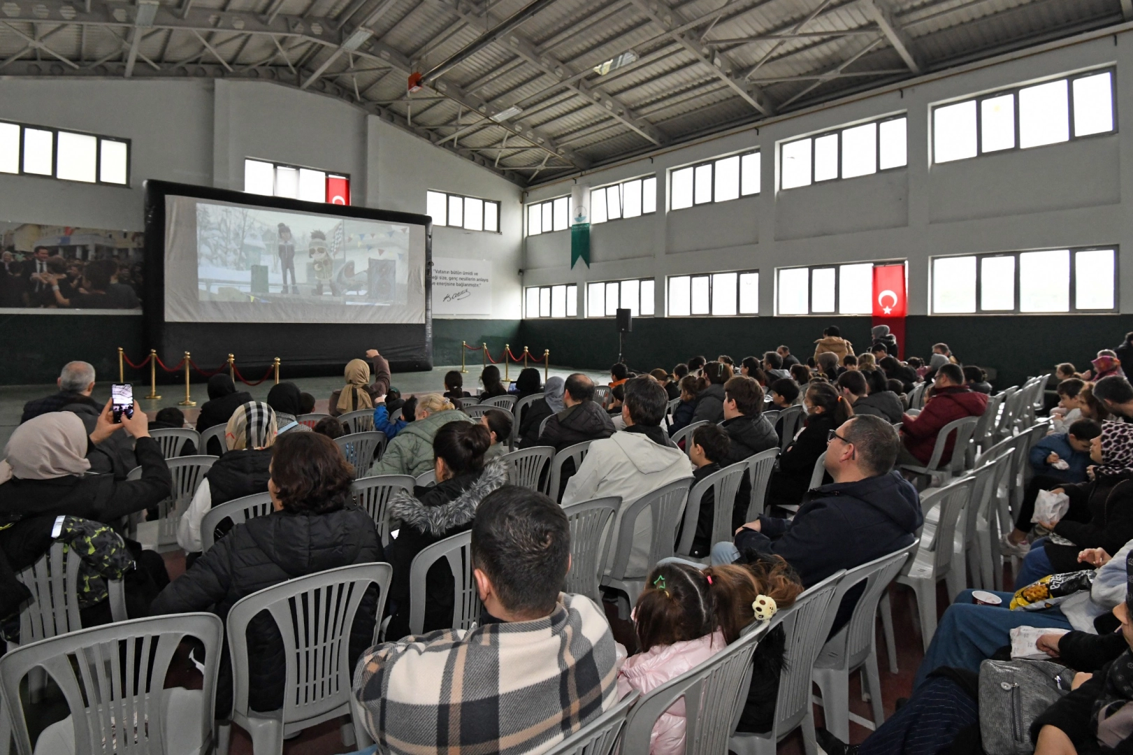 Osmangazi Belediyesi’nin kültür ve sanat etkinlikleri kapsamında düzenlediği ‘Çocuklara Yarıyıl Tatilinde Sinema Keyfi’ programı, Ertuğrul Sağlam Spor Tesisi’nde gerçekleşen ilk gösterimle perdelerini açtı. Sevilen animasyon filmi ‘Kartopu Savaşları 2’, rengarenk sahneleri ve eğlenceli hikayesiyle minik izleyicilere unutulmaz bir sinema deneyimi yaşattı.