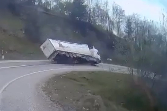 Kaza, İnegöl-Domaniç karayolu Tahtaköprü Mahallesi mevkiinde meydana geldi. Domaniç istikametinden İnegöl'e seyir halinde olan Murat B. (39) yönetimindeki 16 BUT 870 plakalı su yüklü tır, yokuş aşağı inerken sürücüsünün kontrolünden çıktı. Yoldan çıkan tır yamaca devrilirken, ihbar üzerine olay yerine 112, jandarma ve itfaiye ekipleri sevk edildi. Kazada yaralanan sürücü, tırın camı kırılarak ekiplerce kurtarıldı. Yaralı, olay yerine sevk edilen ambulansla İnegöl Devlet Hastanesine kaldırıldı. Kaza anı ise tırın arkasında seyir halinde olan aracın kamerasına anbean yansıdı. Jandarma ekipleri kazayla ilgili inceleme başlattı