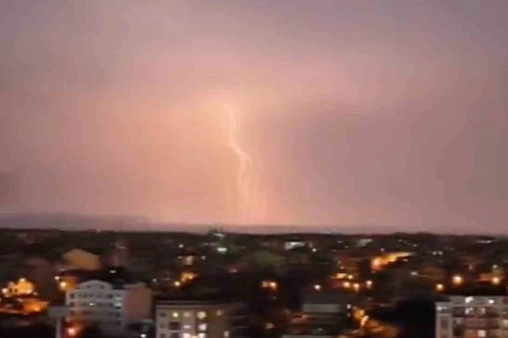 Bursa’nın Karacabey ilçesinde akşam saatlerinde art arda çakan şimşekler geceyi adeta gündüze çevirdi.