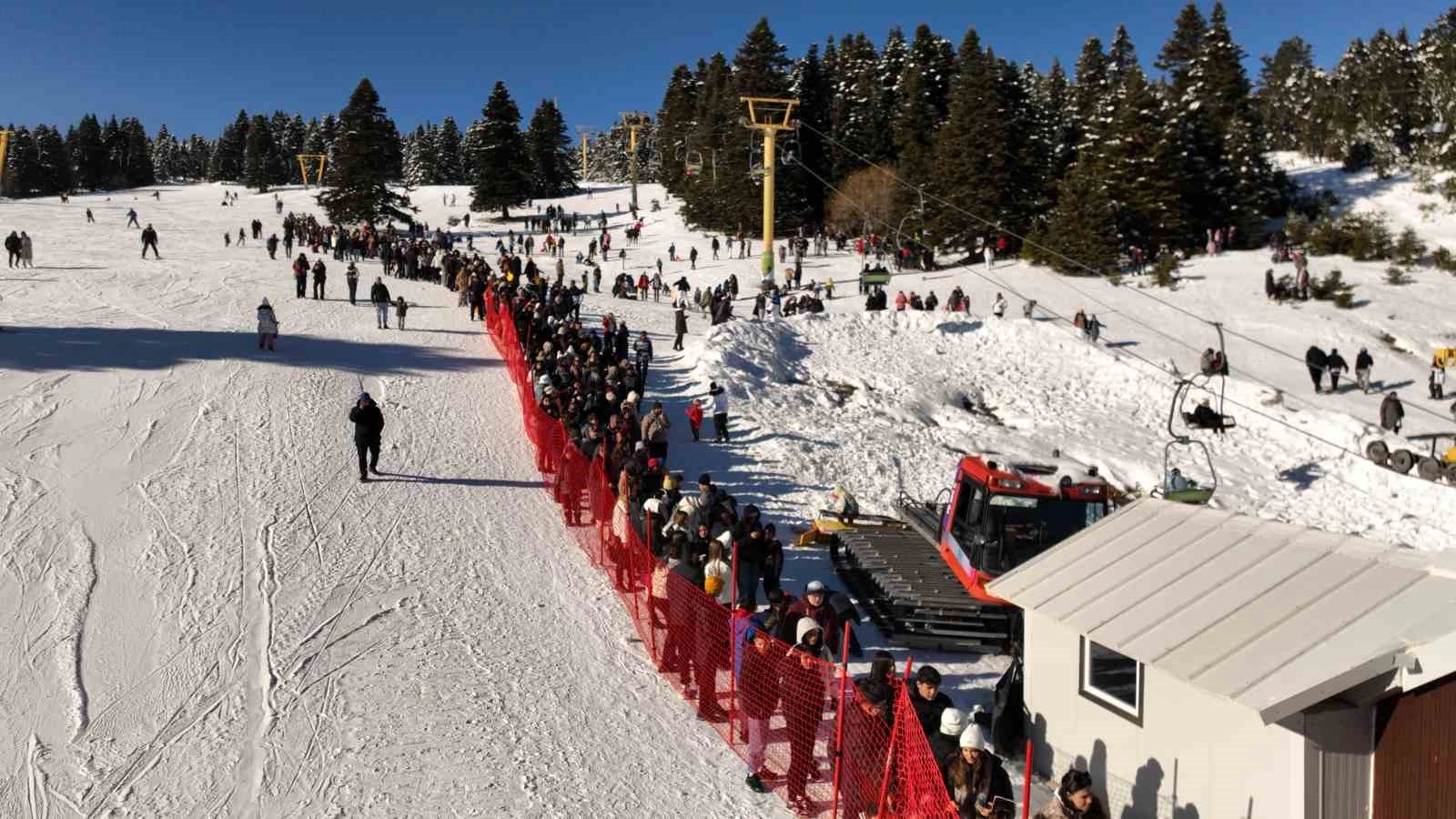 Bir çok kayak merkezinde yeterli kar olmayınca binlerce tatilci sömestir tatilini geçirmek için Uludağ’a akın etti. Yerli ve yabancı turistlerin yanı sıra günübirlikçilerin ve öğrencilerin akın ettiği pistler ana baba gününe dönerken kayak yapmak neredeyse imkansız hale geldi. Telesiyej kuyruklarında izdiham yaşandı, öğrenciler isyan etti.