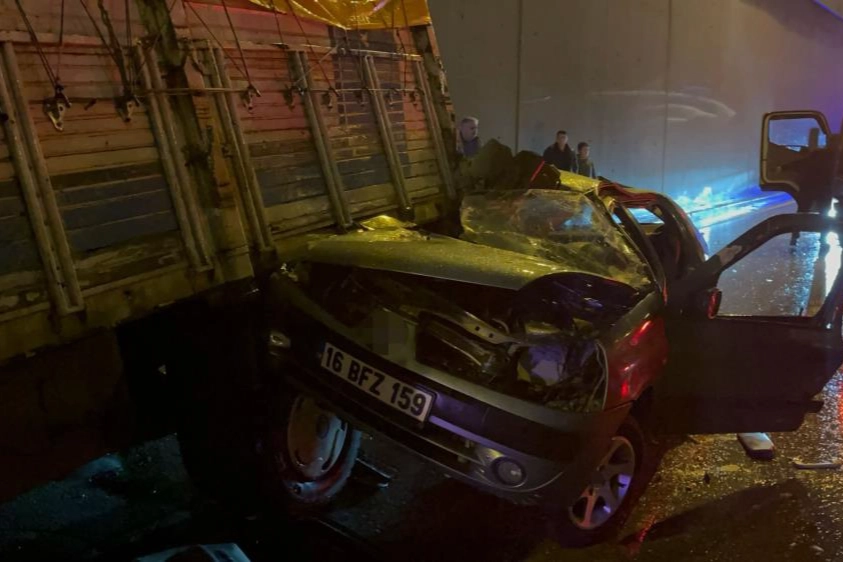 Kaza, dün saat 21.00 sıralarında Yıldırım ilçesi Ankara Yolu Caddesi Mimar Sinan Alt Geçidi'nde meydana geldi. Edinilen bilgiye göre, yağış sebebiyle kayganlaşan yolda bir kamyon ile üç otomobil zincirleme kazaya karıştı. Otomobillerden biri, kamyonun altına girerek durabildi. Kazayı gören vatandaşlar durumu 112 Acil Servis Merkezi'ne bildirdi. İhbar üzerine olay yerine çok sayıda polis, sağlık ve itfaiye ekibi sevk edildi. Olay yerine gelen sağlık ekipleri, kamyonun altına giren 16 BFZ 159 plakalı otomobilde bulunan yolcu Erol Erden'in (50) hayatını kaybettiğini belirledi. Kazada 16 BFZ 159 plakalı otomobil sürücüsü Cenk D., 16 NOM 98 plakalı otomobilde bulunan Dilara ve Fidan Ş. ile 16 BHK 349 plakalı otomobilde bulunan ve ismi henüz öğrenilemeyen 1 kişi yaralandı. Yaralılar, olay yerinde yapılan ilk müdahalenin ardından çevre hastanelere kaldırılarak tedavi altına alındı. Yaralılardan Cenk D.'nin durumunun ağır olduğu öğrenildi.