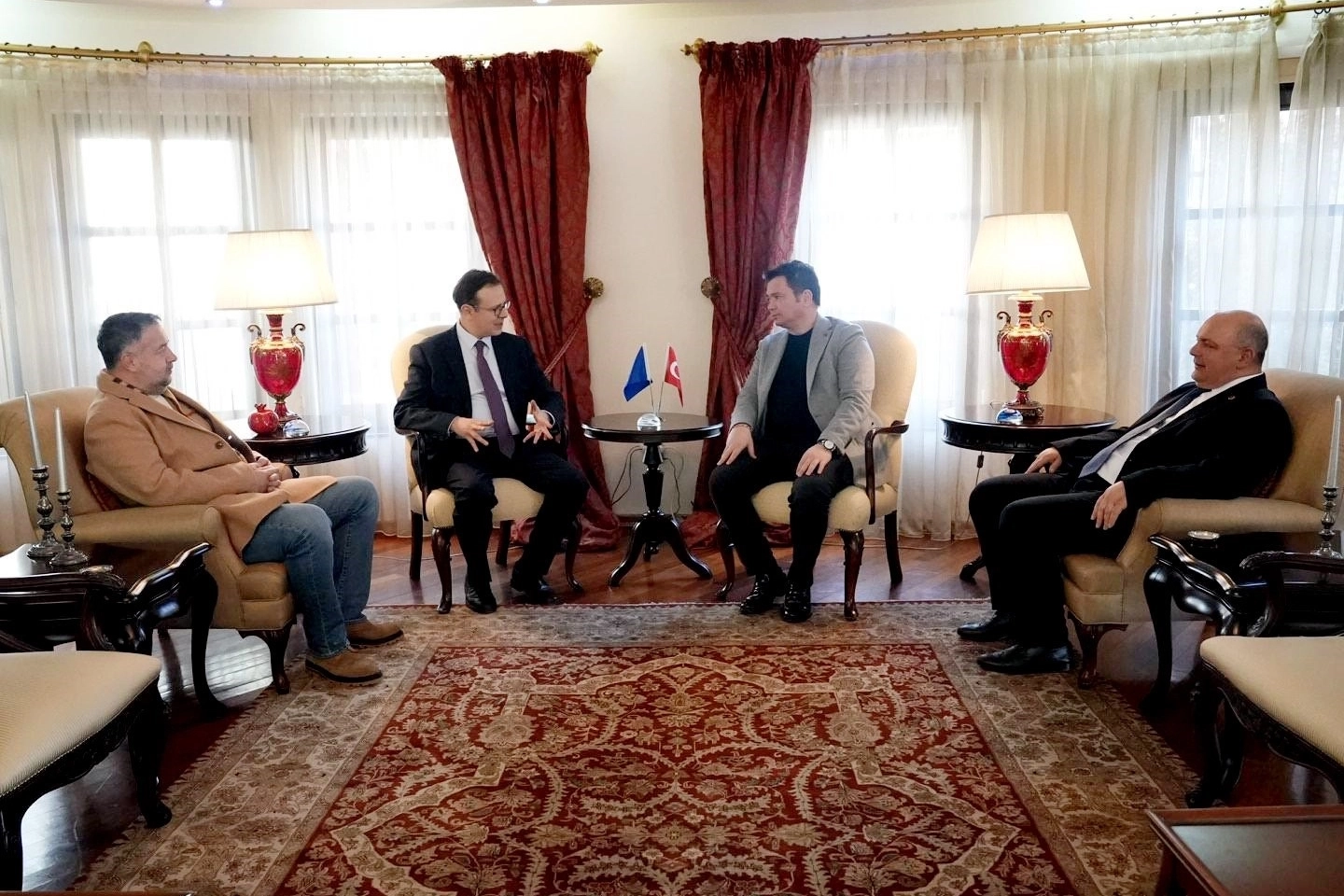 Türkiye Cumhuriyeti Priştine Büyükelçisi Tunç Angılı’yı ve Türkiye Cumhuriyeti Prizren Başkonsolosu Celal Doğan’ı ziyaret eden Başkan Aydın, bölgede işbirliği içerisinde gerçekleştirilebilecek projelere ilişkin fikir alışverişinde bulundu.