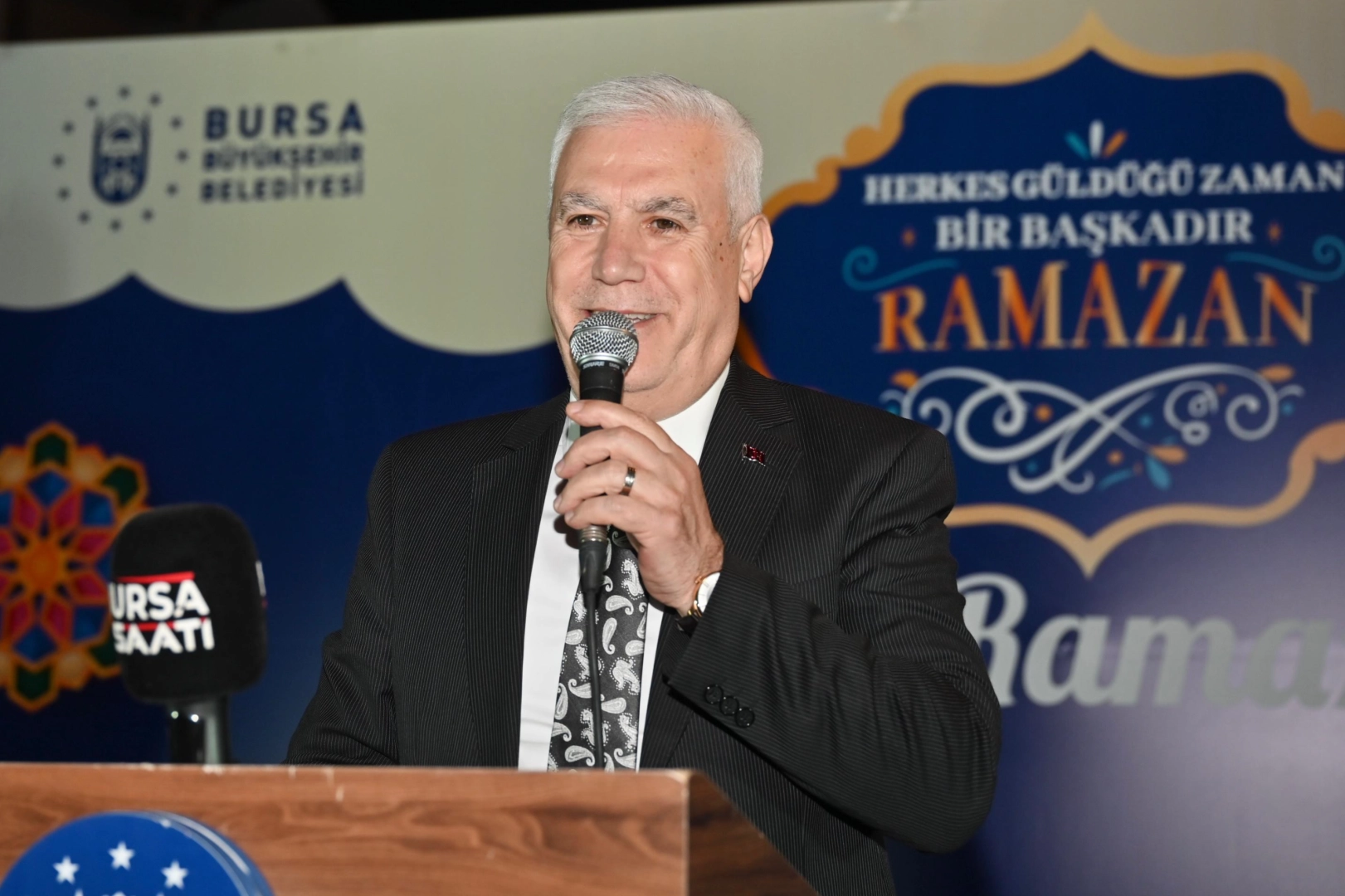 11 ayın sultanı Ramazan’ı birlik, beraberlik, yardımlaşma ve paylaşma ruhu içerisine geçirdiklerini söyleyen Bursa Büyükşehir Belediye Başkanı Mustafa Bozbey, kendisinin ve Büyükşehir Belediyesi yöneticilerinin 17 ilçede düzenlenen iftar programlarında vatandaşlarla aynı sofrayı paylaştığını ifade etti. Her gün farklı bir ilçede Bursalılarla sohbet ettiklerini ve dertleştiklerini belirten Başkan Mustafa Bozbey, “17 ilçedeki 33 farklı noktada hazırladığımız iftar programlarında yaklaşık 90 bin, 3 sabit iftar noktasında ise 110 bin olmak üzere toplam 200 bin vatandaşımızı aynı sofrada buluşturduk. 15 sabit dağıtım noktasında ise 150 bin iftariyelik paket ve bardak çorba ikramında bulunduk. Ramazan’ın bereketini halkımızla birlikte paylaştık. Sosyal belediyecilik anlayışımızla emeklilerimize ve gerçek ihtiyaç sahiplerine ulaştık. Ramazan’ın ruhunu hep birlikte yaşadık. Tüm halkımızın ve İslam aleminin Ramazan Bayramı mübarek olsun” dedi.