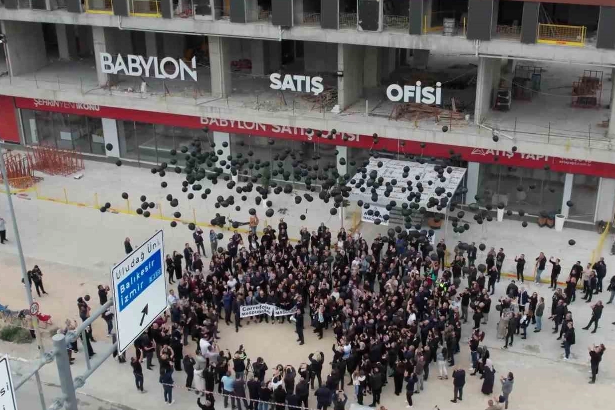 Bursa’da ev hayali kabusa dönen 3 bin 500 aile, inşaatı durdurulan şantiye önünde gökyüzüne binlerce siyah balon bıraktı.