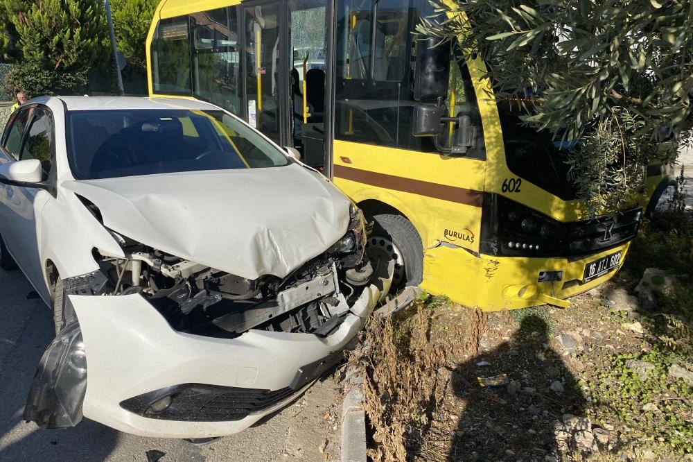Mudanya ilçesi Siteler Mahallesi'nde saat 10.15'te meydana gelen trafik kazası, bölgede paniğe yol açtı. Bilim Caddesi'nden ilerleyen 2GH hattına bağlı 16 ATJ plakalı Burulaş otobüsü, Efeler Caddesi yönünden gelen 16 UAH plakalı otomobille çarpıştı. Çarpışmanın şiddetiyle her iki araç savrularak yol kenarında güçlükle durabildi.
