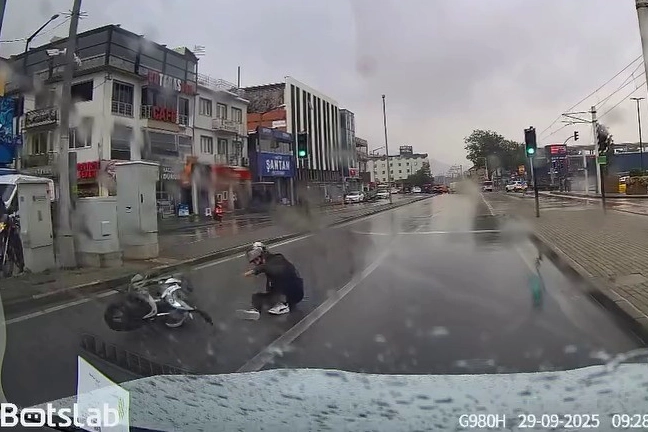 Olay, Osmangazi ilçesi Santral Garaj Mahallesi'nde meydana geldi. Yağışlı havada yolların kayganlaşmasını fırsat bilen bir motosiklet sürücüsü, cadde ortasında drift yapmaya kalkıştı. Bir süre tehlikeli hareketler yapan sürücü, direksiyon hakimiyetini kaybederek savrulup, yere kapaklandı. O anlar cep telefonu kamerasına saniye saniye yansırken, kazayı gören vatandaşlar panikle sürücünün yardımına koştu. Şans eseri ciddi bir yara almayan motosikletli, kendi imkanlarıyla ayağa kalktı.