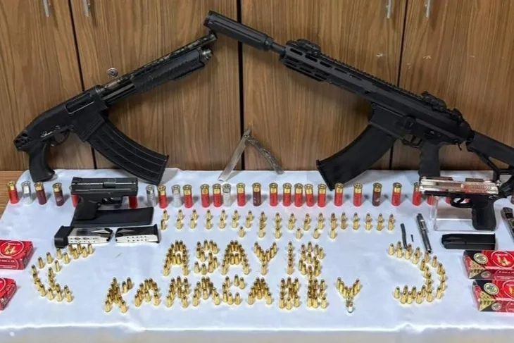 Yapılan aramalarda 34 adet dolu kartuş, 240 adet dolu fişek, 2 adet tabanca, 2 adet pompalı tüfek ile 2 adet bıçak bulundu.