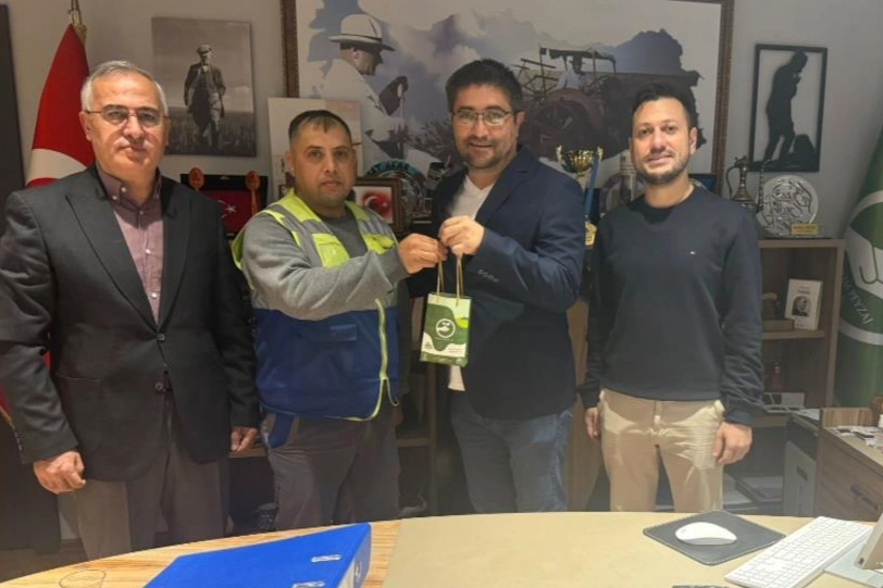 Bursa'da temizlik görevlisi olan Fuat Sayhan, temizlediği bankın altında bulduğu altın dolu çantayı polis merkezine teslim etti.