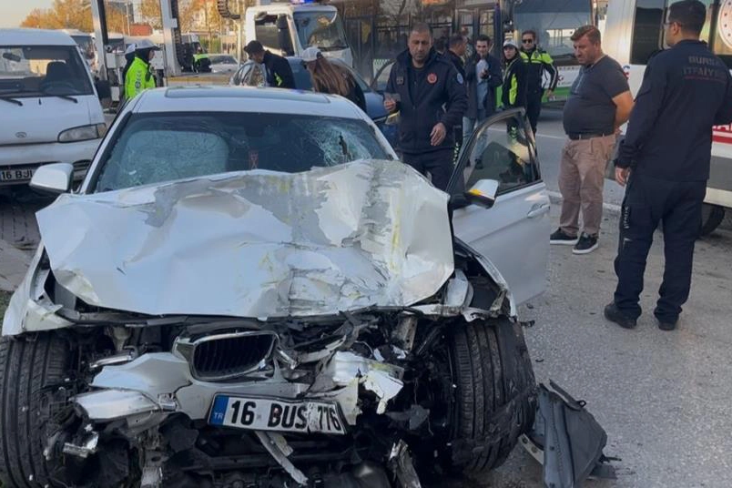 Olay, merkez Nilüfer ilçesi Karaman Mahallesi Mudanya Yolu üzerinde meydana geldi. Edinilen bilgiye göre, trafikte hız yapan ve birbirleriyle yarıştıkları öne sürülen iki otomobil sürücüsü, direksiyon hakimiyetini kaybetti. Kontrolden çıkan araçlar önce seyir halindeki belediye otobüsüne çarptı, çarpmanın etkisiyle savrulan araçlar kaldırıma çıkarak durabildi. Kazayı gören vatandaşların ihbarı üzerine bölgeye çok sayıda polis, sağlık ve itfaiye ekibi sevk edildi. Yaralanan 13 kişi, sağlık ekiplerince yapılan ilk müdahalelerin ardından çevredeki hastanelere kaldırıldı. Polis ekipleri kazayla ilgili soruşturma başlatırken, iki otomobil sürücüsünün yarış yaptığı iddiası üzerine incelemeler sürüyor.