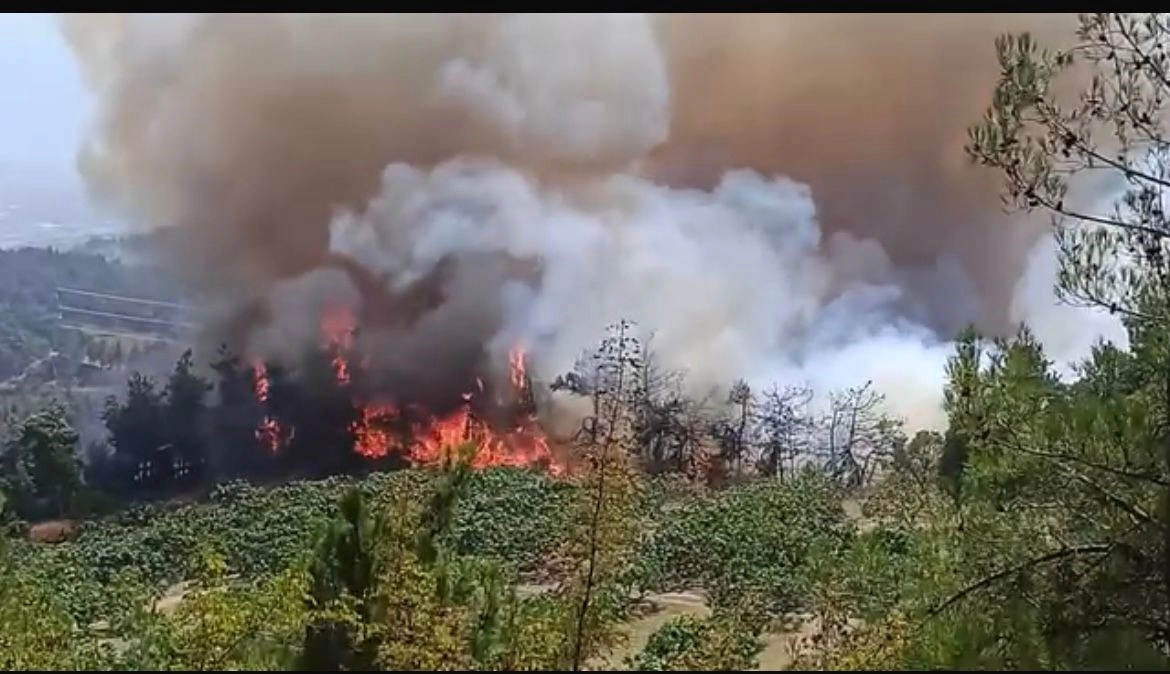 Öğle saatlerinde televizyon vericilerinin bulunduğu Gündoğdu köyündeki çamlık alanda çıkan yangın zeytin bahçelerine ve ekili alanlara da sıçradı. Yangın daha sonra alt taraftaki Çağlayan köyüne doğru büyüdü. Bölgede birkaç noktada yangının sürdüğü öğrenilirken, alevlere hem havadan hem karadan müdahale ediliyor.