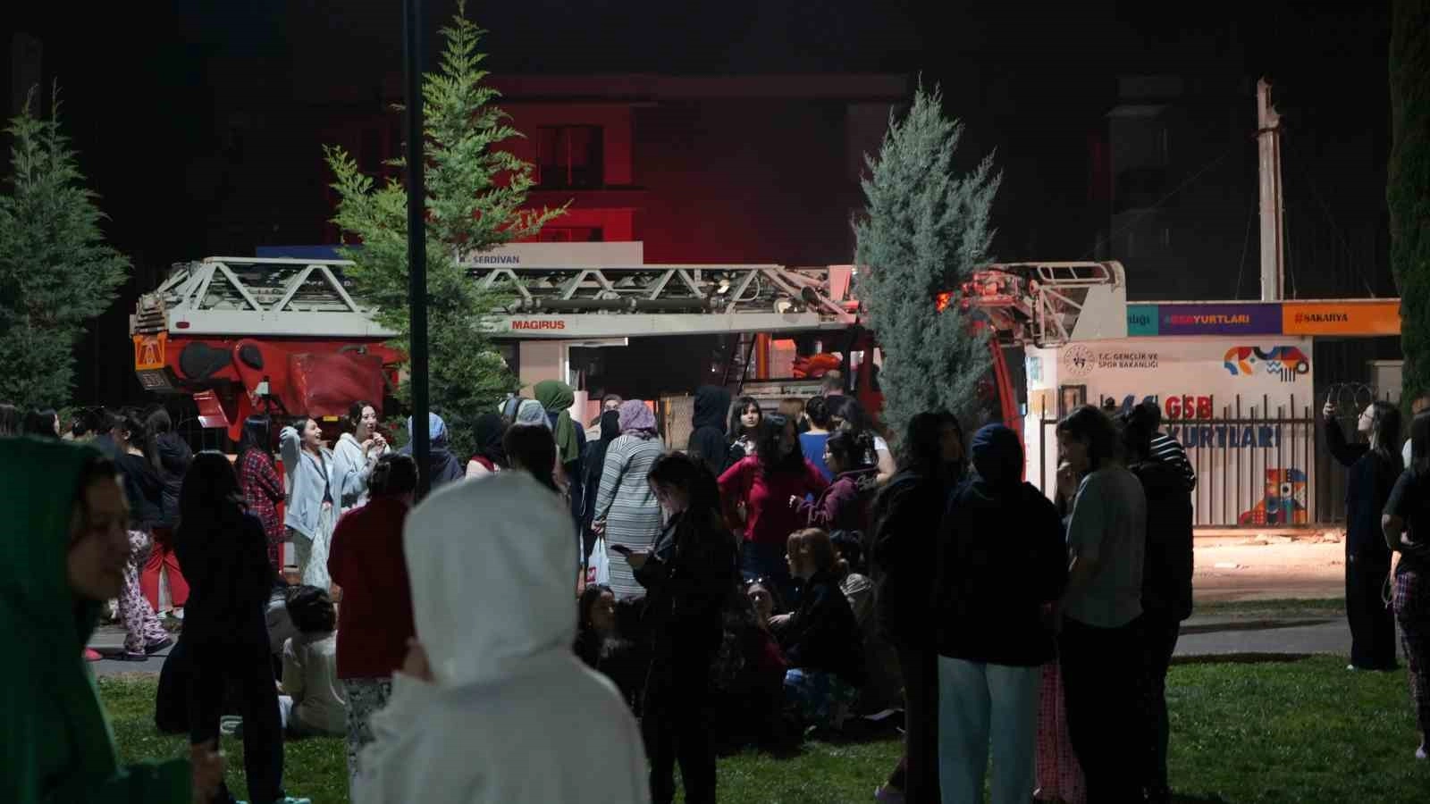 Serdivan ilçesinde bulunan Ayşe Hümeyra Ökten Öğrenci Yurdu’nda kalan bir öğrenci odasında elektrik aksamından kaynaklı yangın çıktı. Odada bir anda alevler yükselirken yurtta kalan öğrenciler kendilerini dışarı attı. Yangın başladığı anda yurttaki yağmurlama sistemi devreye girince, alevlerin büyümesini engelledi. Durumun haber verilmesi üzerine bölgeye çok sayıda itfaiye ve polis ekibi sevk edildi. Olay yerine gelen itfaiye ekiplerinin hızlı müdahalesi ile yangın kısa sürede söndürüldü.