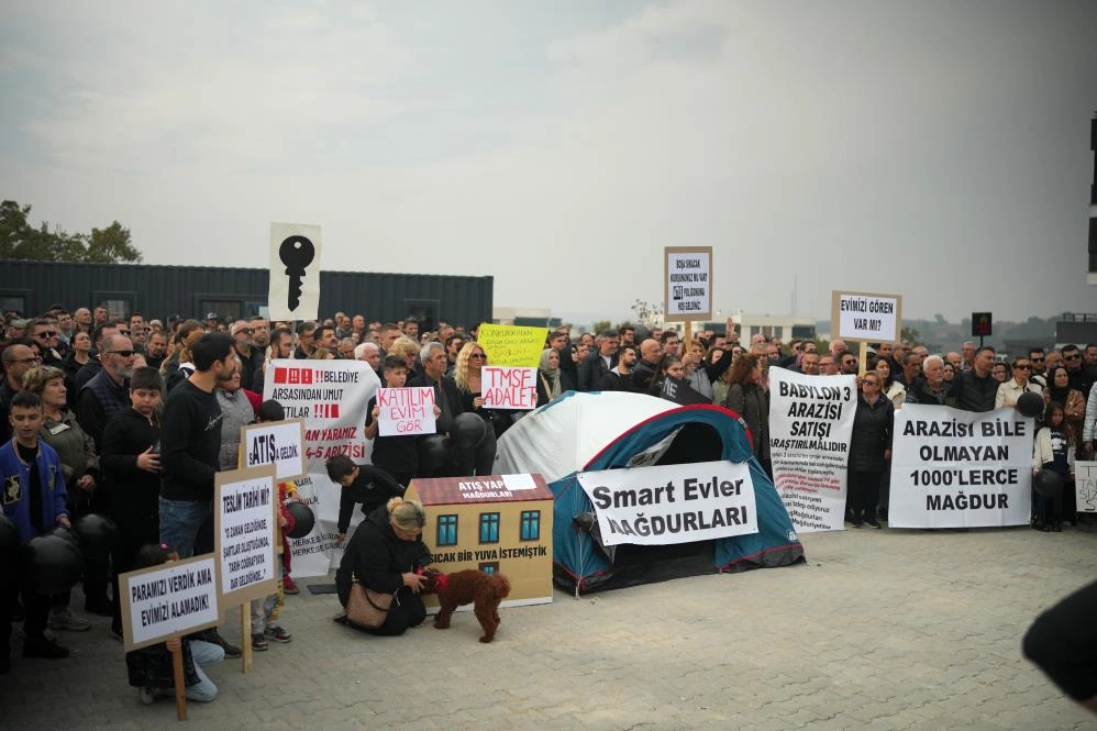 Mağdur aileler adına konuşan Cihan Ardıç, "Bizler; tamamen yasal yollarla, meşru bir firmadan ev sahibi olma hayaliyle yola çıkan, yıllarca yemeden içmeden, çocuklarımızdan kısarak biriktirdiğimiz helal kazançlarımızla yuva kurmak isteyen vatandaşlarız. Tıpkı binlerce insan gibi, topraktan ev alma hayaliyle Atış Yapı firmasına güvendik. Billboardlarda, şehirdeki afişlerde, reklam mecralarında, siyasilerle verdikleri fotoğraflarda güven telkin eden bu firmaya inandık. Peki bu güven suç mu? Böyle bir suç olabilir mi? Bugün yaklaşık 3 bin 500 aile ve 150 bin mağdur büyük bir belirsizlik ve çaresizlik içinde. Biz ticaret yapmadık, ev almak istedik. Bazı çevrelerin iddia ettiği gibi biz yatırımcı, tüccar ya da zengin bir kesim değiliz. Tek gayemiz başımızı sokacak bir ev sahibi olmaktı. Kimimiz kendisi, kimimiz evladı için, kimimiz ise üç kuruş birikimini değerlendirmek için bu yola çıktı. ’Ticarette kâr da olur zarar da’ sözü bizim için geçerli değildir. Biz yatırım değil, yuva satın almak istedik. 16 Haziran 2025’te konkordato ilan eden Atış Yapı o günden bu yana bizleri oyaladı, yanılttı, susturdu. Biz inandık, güvendik fakat kandırıldık. Şirket yöneticileri dolandırıcılık suçlamasıyla tutuklandı, firmaya kayyım atandı. Aradan geçen beş ayda bir çivi bile çakılmadı, şantiyeler suskun, umutlarımız tükeniyor" ifadelerini kullandı.