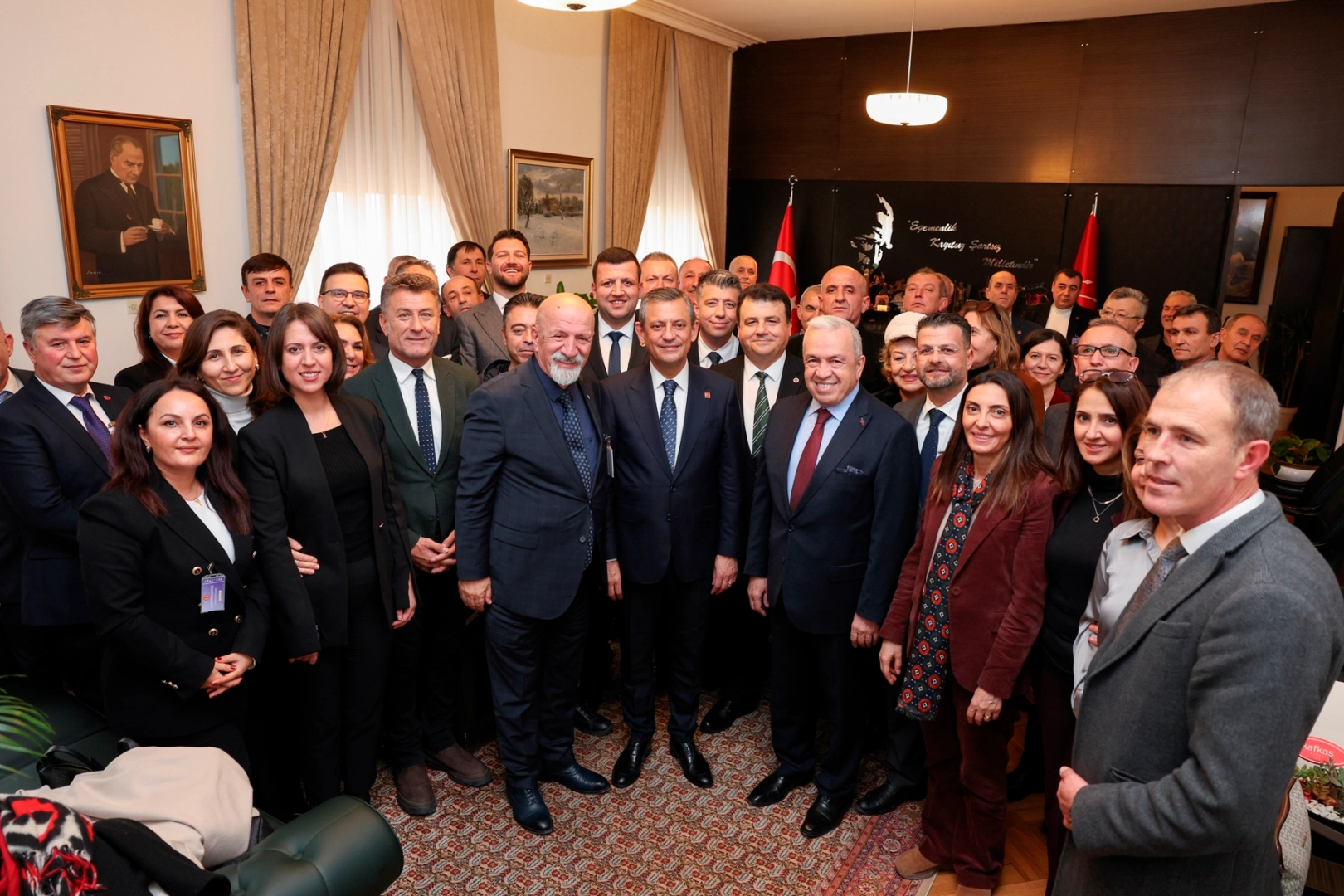TBMM’DE TEMASLAR Başkan Şadi Özdemir önderliğindeki heyet, daha sonra da TBMM’yi ziyaret ederek, CHP Grup Toplantısı’na katıldı. CHP Genel Başkanı Özgür Özel’in ağırlıklı olarak geçim sıkıntısı ve ekonomik pahalılık ile ilgili değerlendirmelerini dinleyen katılımcılar, toplantının ardından CHP Bursa Milletvekilleri Orhan Sarıbal ve Hasan Öztürk’ün de katılımıyla CHP Genel Başkanı Özgür Özel’i TBMM’deki makamında ziyaret etti. CHP Genel Başkanı Özgür Özel ile Bursa ile ilgili görüş alışveriş bulunan Başkan Şadi Özdemir, “Genel Başkanımızı Bursamızda bir kez daha ağırlamak istiyoruz” dedi. Başkan Şadi Özdemir, nazik misafirperverlikleri için de Genel Başkan Özel’e teşekkür etti.