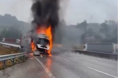 Bursa-Yalova yolunda bir tır seyir halindeyken alev aldı