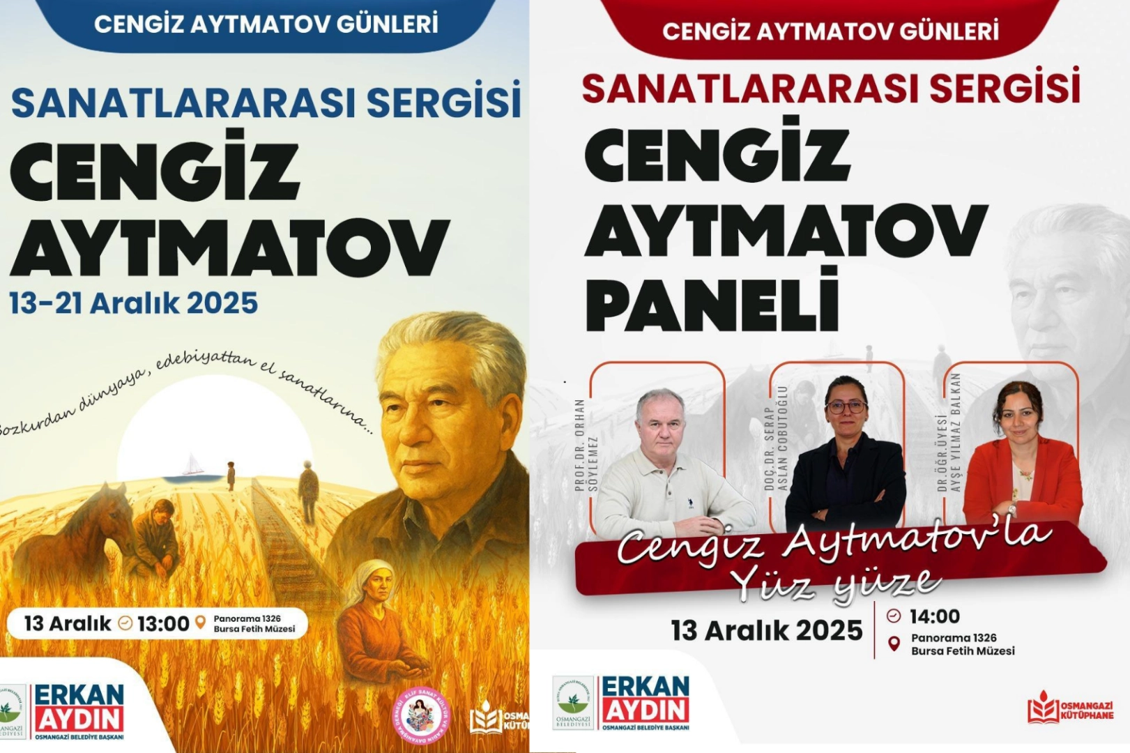 Eserleri 176 dile çevrilerek halkını dünyaya tanıtan ünlü Kırgız yazar, gazeteci, diplomat ve devlet adamı Cengiz Aytmatov’un hayatı ile eserleri, Osmangazi Belediyesi’nin Elif Sanat Kültür ve Kadın Dayanışma Derneği’yle ortaklaşa düzenleyeceği sergi, panel ve kolektif okuma etkinlikleriyle 9 gün boyunca Bursalılarla buluşacak. ‘Cengiz Aytmatov Günleri’, 13 Aralık 2025 tarihinde Panorama 1326 Fetih Müzesi’nde düzenlenecek ‘Sanatlararası Cengiz Aytmatov Sergisi’ ile başlayacak. Cengiz Aytmatov’un Cemile, Toprak Ana, Gün Olur, Asra Bedel, Elveda Gülsarı ve Beyaz Gemi romanlarının incelenerek rölyef, ipek koza, yağlı boya ve çini gibi el sanatlarıyla hazırlanan birbirinden özel eserler sanatseverlerin beğenisine sunulacak.