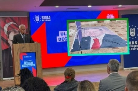 Bursa'da Cumhurbaşkanı Recep Tayyip Erdoğan'ın posteri bir belediye çalışanı tarafından yere serilmişti.