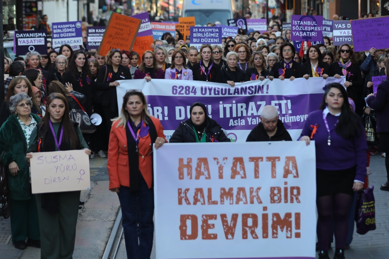 “Kadına yönelik şiddetle mücadele demek; kadınların eşitlik, özgürlük ve güvenlik içinde yaşama hakkını savunmak demektir” şeklinde duygularını dile getiren Bursa Kent Konseyi Kadın Meclisi Başkanı Derya Şimşek Aksakal, ”Biz kadınlar, hayatlarımızı savunmak için yürüyoruz. Şiddetsiz bir yaşam için, adalet için, eşitlik için sokaktayız. Bugün buradan bir kez daha ilan ediyoruz: Bir kişi daha eksilmeyeceğiz. Erkek şiddetine boyun eğmeyeceğiz. Hayatlarımızdan, haklarımızdan, özgürlüğümüzden vazgeçmeyeceğiz” dedi.