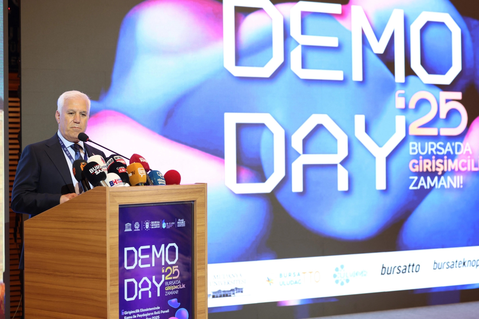 Ayrıca projeler, kurulan stantlar aracılığıyla akademisyenlere, iş insanlarına ve vatandaşlara tanıtılacak. ‘Trafik verilerinin yapay zekayla analiz edilmesi, enerji verimliliğini artıran sensör tabanlı sistemler, atık toplama optimizasyonu, akıllı tarım uygulamaları, dijital belediyecilik çözümleri’ gibi yenilikçi girişimler, etkilerini ve gelecek iş birliği potansiyellerini katılımcılarla paylaşacak. “Herkesi bu sürecin parçası olmaya çağırıyorum” Yenilikçi fikirleri merak edenleri etkinliğe davet eden Bursa Büyükşehir Belediye Başkanı Mustafa Bozbey, “Bu program birlikte gelişmenin, deneyim paylaşımının ve geleceği inşa etmenin bir platformudur. Bursa Demo Day 2025, bu cesareti desteklemek, bu vizyona ortak olmak ve bu enerjiyi kentle buluşturmak için tasarlandı. Demo Day 2025’in finalinde yer alacak her proje, sadece bir fikir değil; aynı zamanda Bursa’nın geleceğine bırakılan bir iz olacaktır. Gençlerimizi, girişimcilerimizi, fikir sahibi herkesi bu sürecin parçası olmaya çağırıyorum. 14 Kasım’da düzenlenecek büyük finalde görüşmek üzere, tüm katılımcılarımıza başarılar diliyorum” dedi.