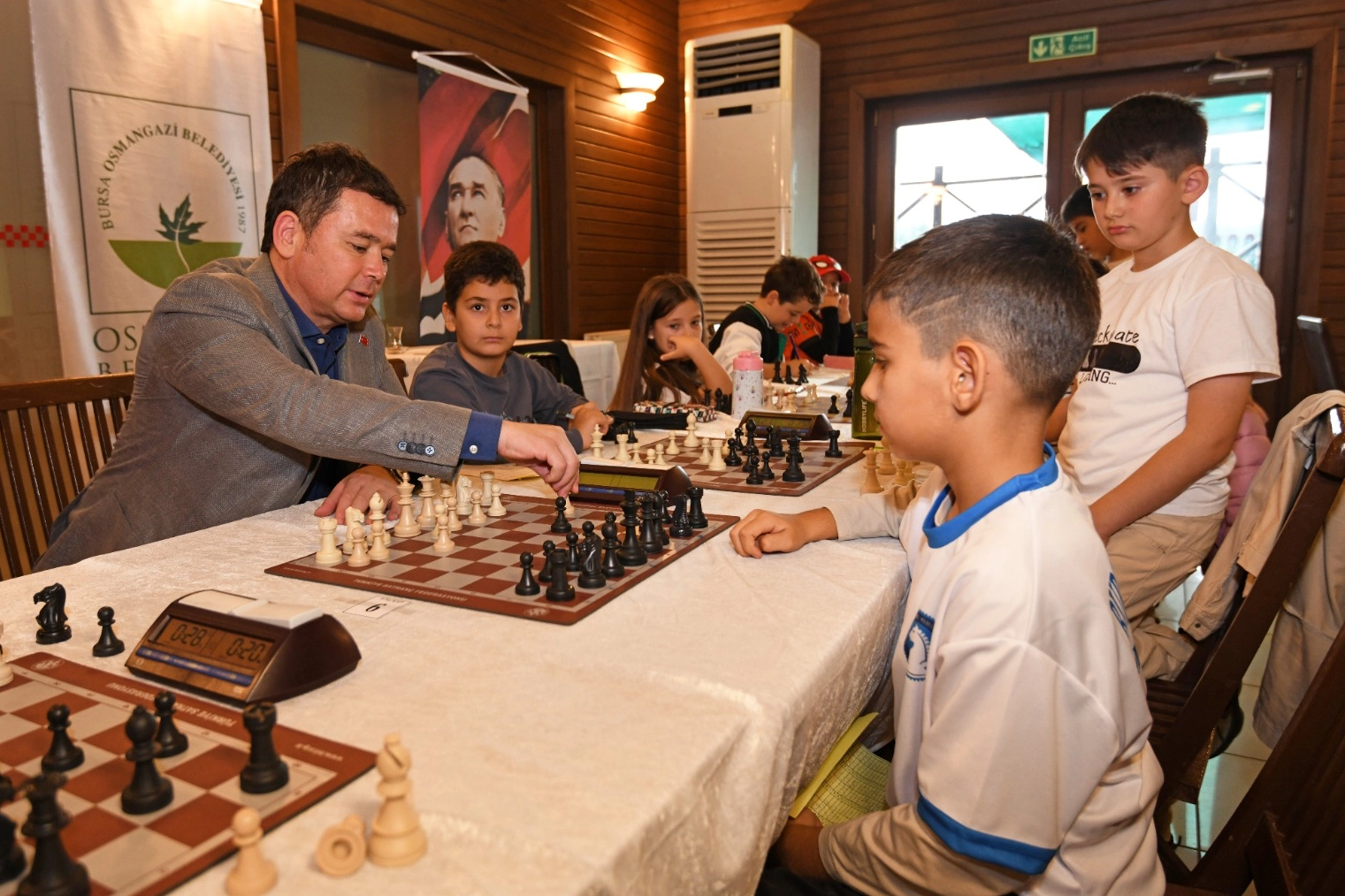 Osmangazi Belediyesi’nin Türkiye Satranç Federasyonu ile Gençlik ve Spor İl Müdürlüğü iş birliğinde düzenlediği 29 Ekim Cumhuriyet Bayramı Satranç Turnuvası, Cumhuriyet Bayramı’nın ruhunu sporun birleştirici gücüyle buluşturdu. Bu yıl 2025–2026 satranç sezonunun ilk turnuvası olma özelliğini taşıyan organizasyonda, 8 yaş altı ve 10 yaş altı olmak üzere iki farklı kategoride toplam 64 sporcu hamle yolculuklarına başlamak üzere yerlerine oturdu. Satranç tutkunları, Cumhuriyet Bayramı’nın ruhunu taşıyan karşılaşmalarda kıyasıya ter dökerken, Osmangazi Belediye Başkanı Erkan Aydın ve Türkiye Satranç Federasyonu Bursa İl Temsilcisi Taner Güler çekişmeli mücadelelerin heyecanına ortak oldu.