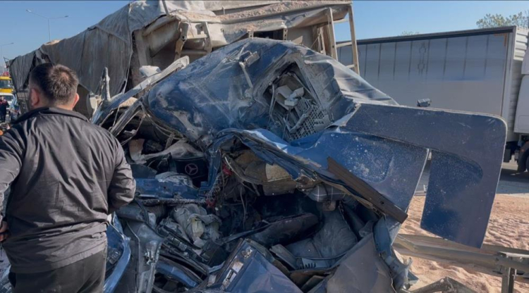Bariyerlere saplanıp demir yığınına dönen kamyon kabininde can pazarı
