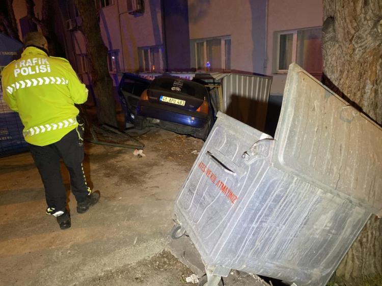 Bursa'da kontrolden çıkan araç apartmanın bahçesine savruldu