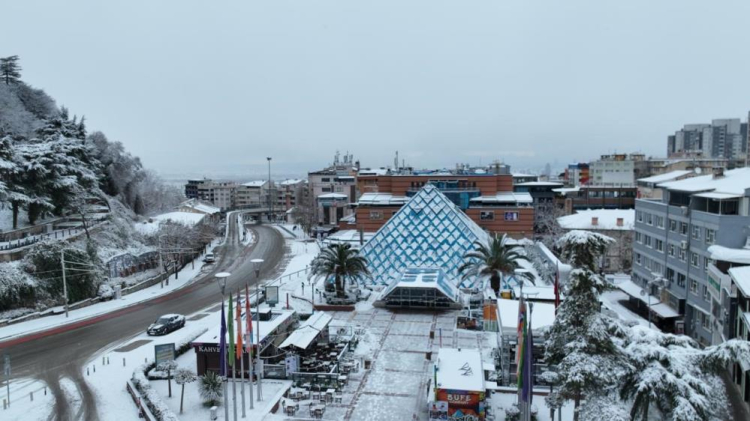 Bursa yeni yılın ilk gününe karla uyandı. Her yer bembeyaz olurken, şehrin simge noktaları dron ile görüntülendi.