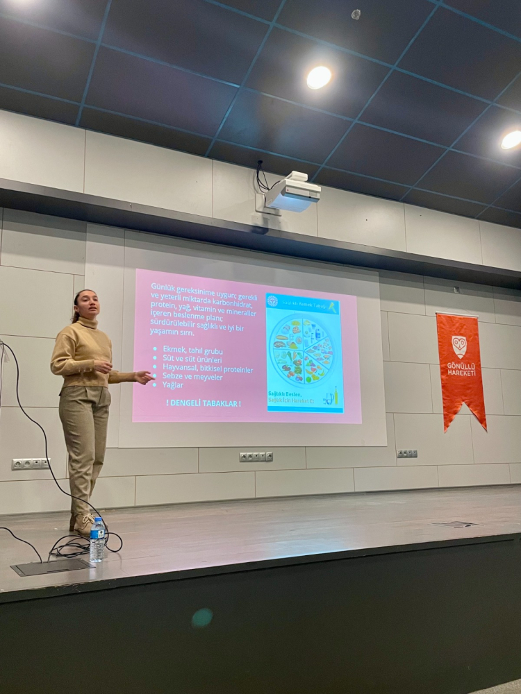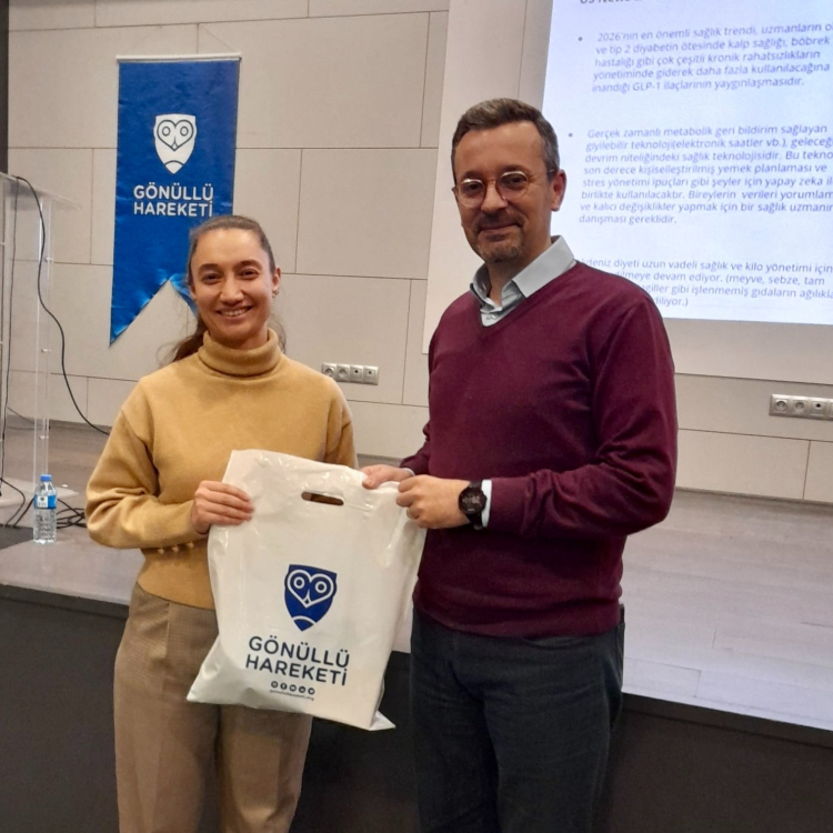 Serinin ilk konuğu olan Diyetisyen Hande Güngör, yeterli ve dengeli beslenmenin fiziksel ve ruhsal sağlık üzerindeki etkilerini anlatarak, kısa sürede kilo verme isteğinin iyilik halini desteklemek yerine stresi artırdığına dikkat çekti. Sağlıklı kütlenin ve ideal beden kütle indeksinin korunmasının önemine değinen Güngör, bu hesaplamaları katılımcılarla uygulamalı olarak paylaştı. Günlük gereksinime uygun karbonhidrat, protein, yağ, vitamin ve mineralleri içeren dengeli bir beslenme planının sürdürülebilir sağlıklı yaşamın temel anahtarı olduğunu vurguladı.