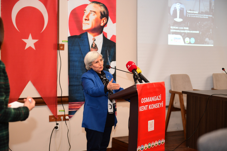 Konuşmaların ardından Osmangazi Kent Konseyi Genel Sekreteri Sosyolog Mutlu Çınar’ın moderatörlüğünde eski Milli Savunma ve Milli Eğitim Bakanı, 19-20-21 ve 24. Dönem Bursa Milletvekili Turhan Tayan’ın düşüncelerini aktardığı söyleşiye geçildi.