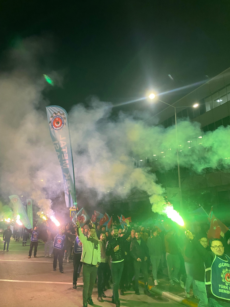Görüşmelerin durma noktasına gelmesiyle birlikte Oyak Renault ve Bosch işçileri, sabahın erken saatlerinde cep telefonlarının ışıklarını açarak "ışıklı eylem" yaptı. Fabrika önlerinde sloganlar ve alkışlar eşliğinde taleplerini dile getiren çalışanlar, dikkat çekici görüntüler oluşturdu.