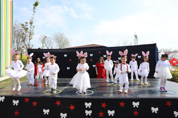 Kreş binalarında ve Uğur Mumcu Sahnesi’nde düzenlenen etkinliklerde çocuklar, koro eşliğinde Türkçe ve İngilizce şarkılar söyledi. Her sınıfın kendi hazırladığı özel koreografileri sergilediği şenlikler, izleyenlere keyifli anlar yaşattı. Çocukların bayram sevincine, Nilüfer Belediye Başkan Yardımcıları Bukle Erman ve Emre Karagöz de katılarak ortak oldu.