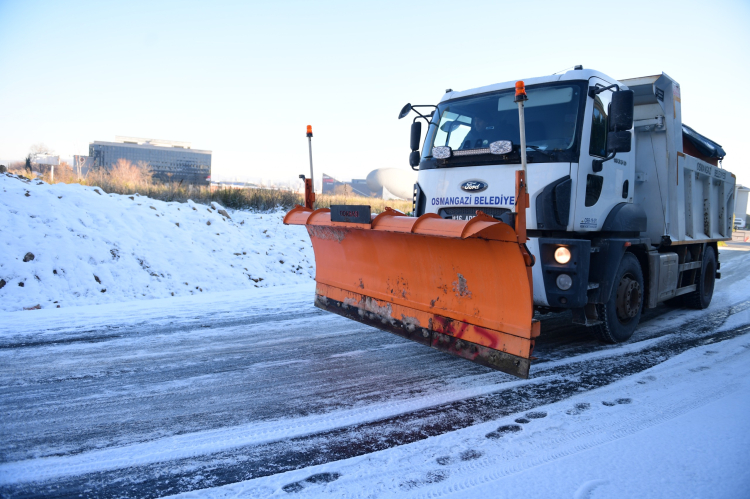Yeni yılın ilk gününde etkili olan kar yağışıyla birlikte teyakkuzda olan Osmangazi Belediyesi ekipleri, yollardaki buzlanmaları önlemek amacıyla tuzlama çalışmaları gerçekleştirdi.