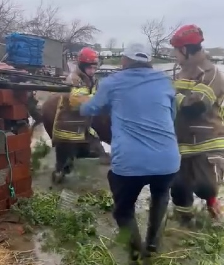 İhbar üzerine olay yerine gelen itfaiye ve AFAD ekipleri, hayvanları dikkatli bir çalışma sonucu bulundukları yerden çıkararak güvenli alana taşıdı.